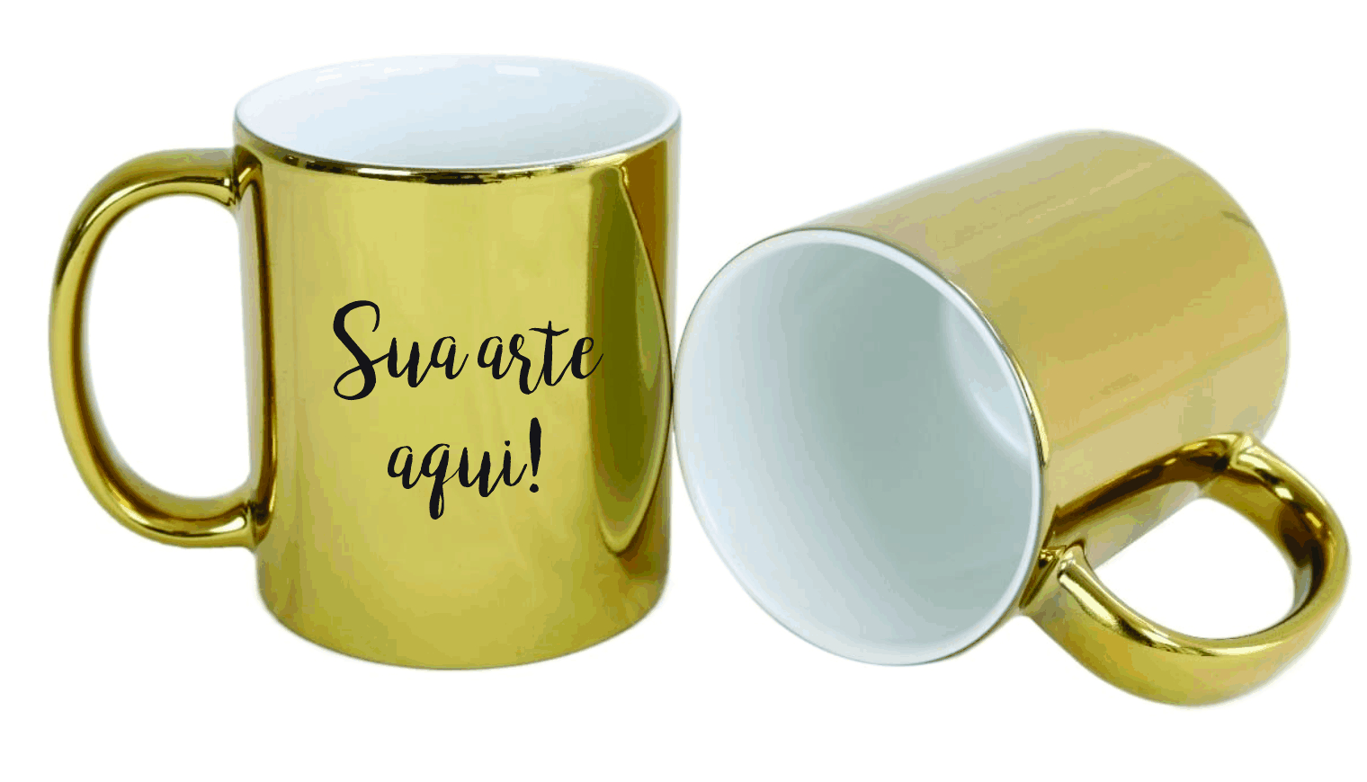 Caneca dourada. Material de cerâmica com capacidade de 300ml.