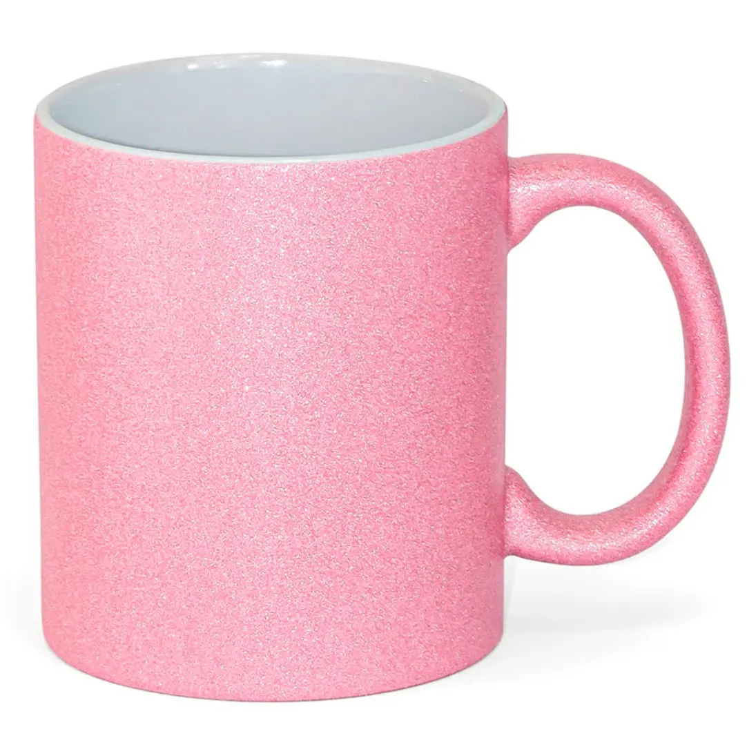 Caneca rosa glitter. Material de cerâmica com capacidade de 300ml.