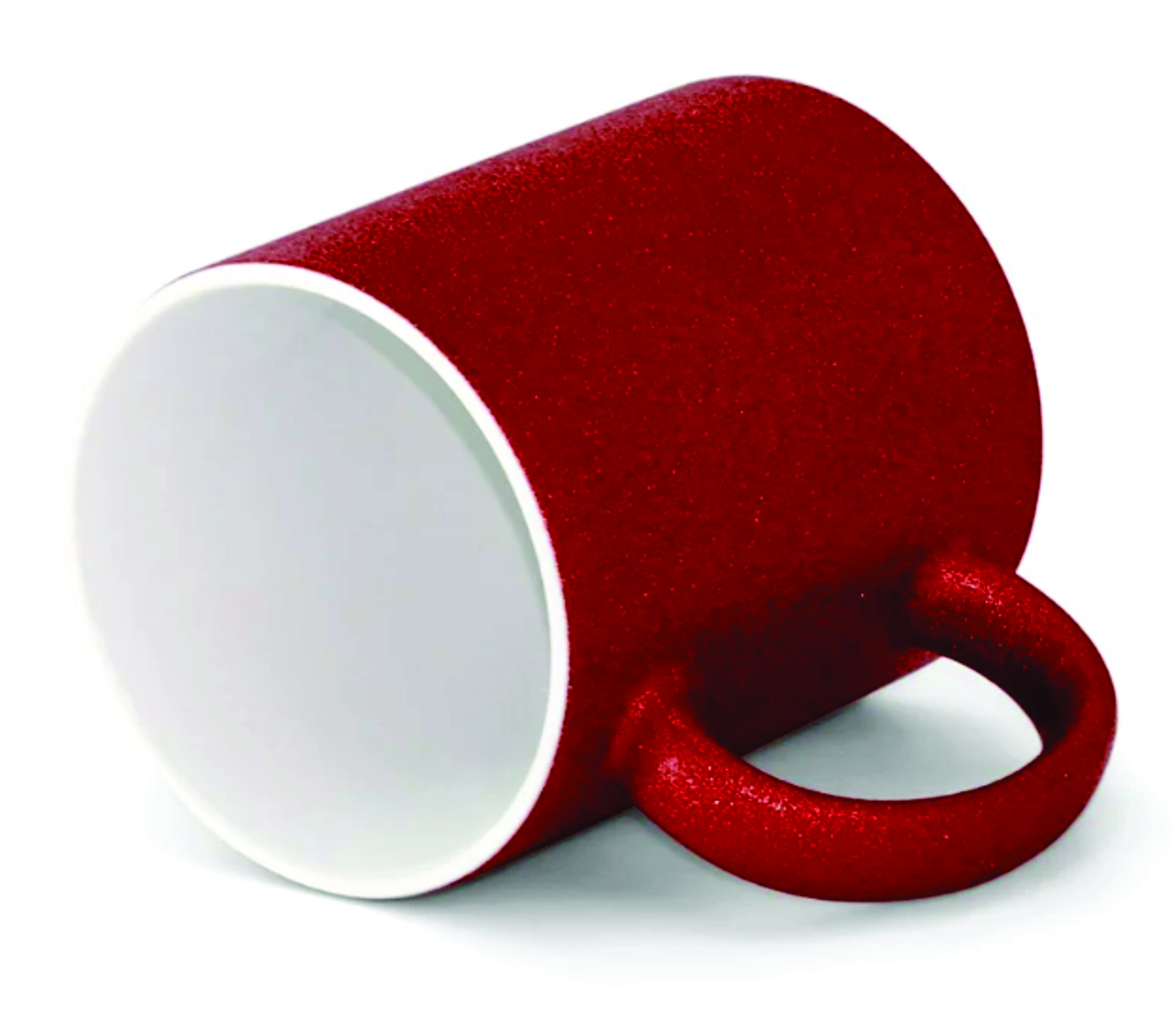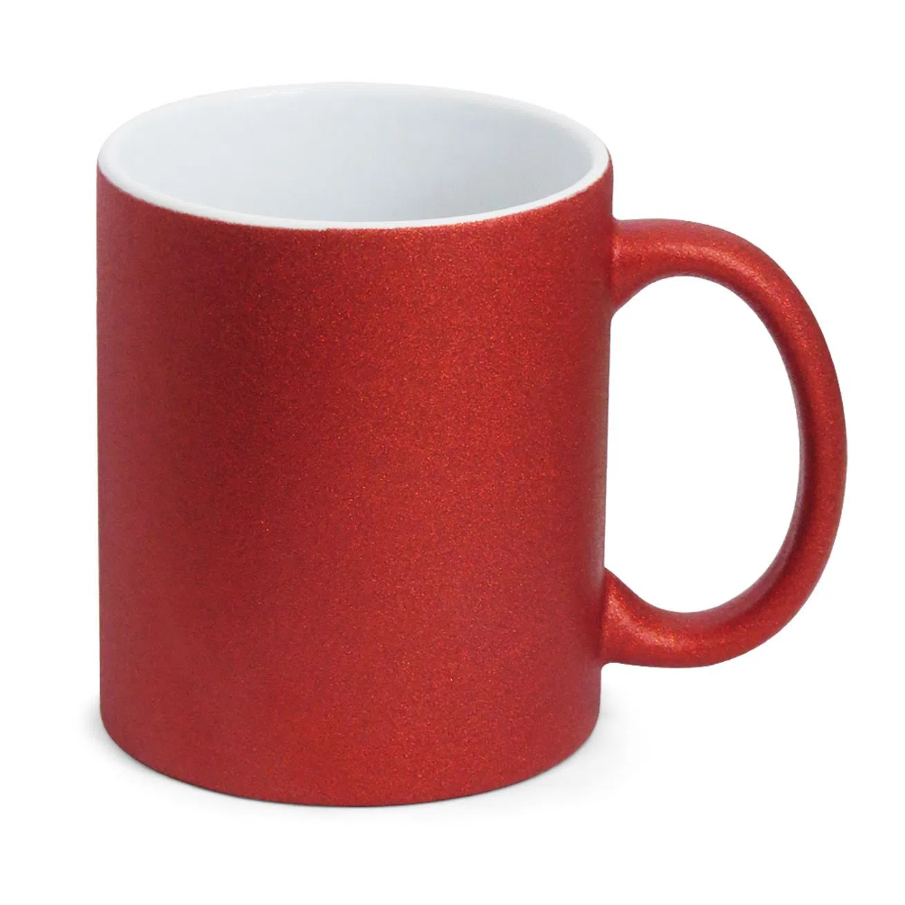 Caneca vermelha glitter. Material de cerâmica com capacidade de 300ml.